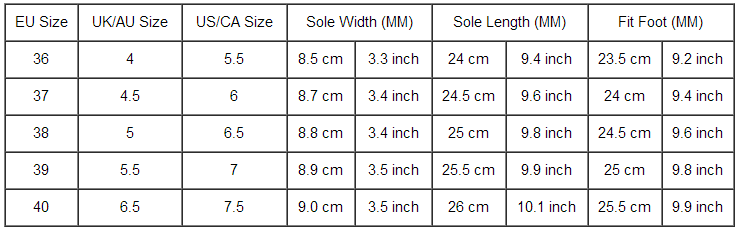 5 sizes for selection: 36, 37, 38, 39, 40(EU)