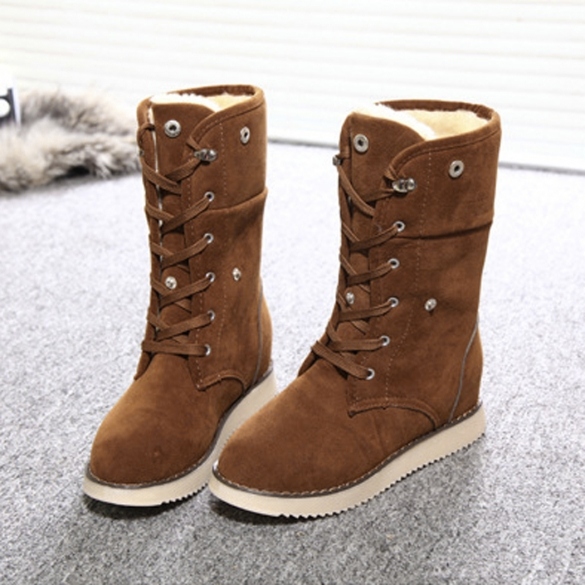 Fashion Women Winter Warm Lace Up Flat Heel Ankle Snow Boot Fleece Lined Size 36-40