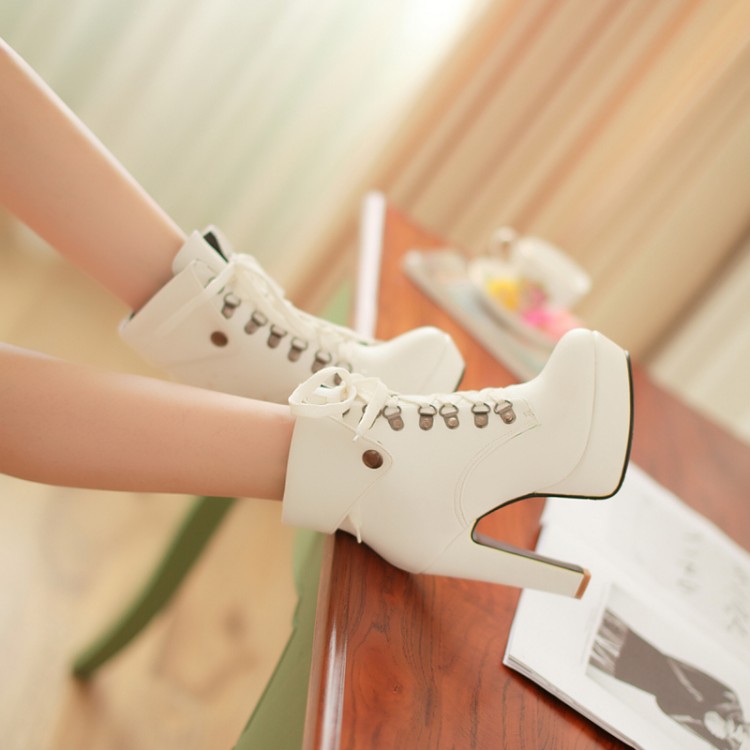Classic martin boots, lace up design, pure color, chunky heel, high plarform, lapel details, simple and fashion, can be pair with most of your clothes. With this boots will instantly add stand-out glamour to your look.