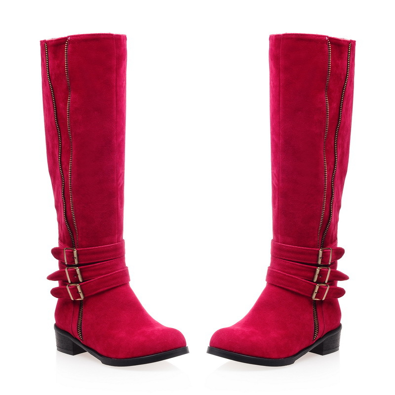 Fashion Suede Belt Buckles Side Zipper High Boots