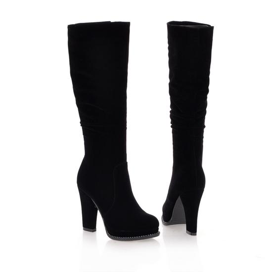 This black high knight boots is so cool, highlight tall canister, high platform, high chunky heel.It will highlights your long leg, and make you outstanding in any occasion.