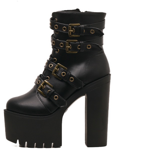 Nightclub Thick Bottom High Heel Waterproof Platform Belt Buckle Martin Boots
