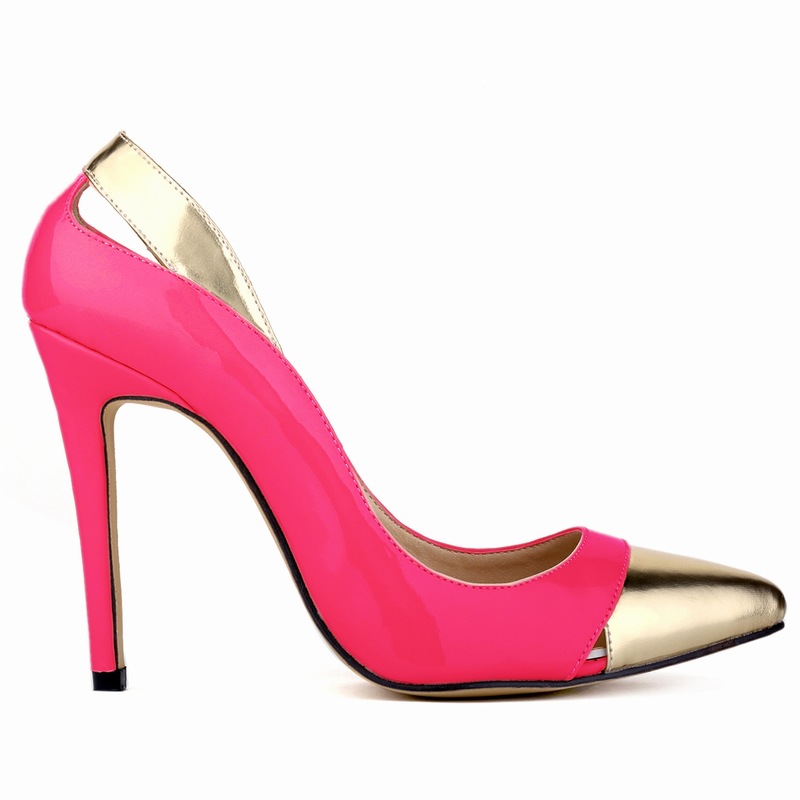 This is an unique shallow heel shoes,featuring golden color matching, make this shoes more beautiful. Pointed golden head, unique back hollow out design. With this unique shoes, you will be chic and fashion.