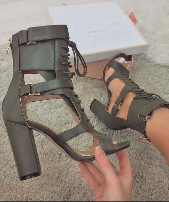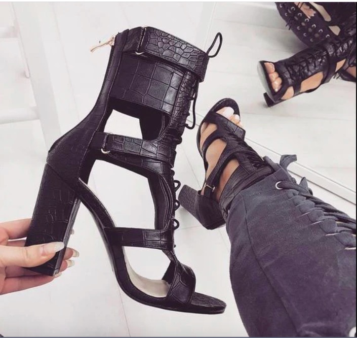 Lace UP Ankle Wraps Open Toe High Chunky Heels Sandals