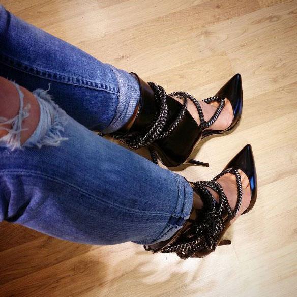 TASSELS STRAPS POINTED TOE STILETTO HIGH HEELS