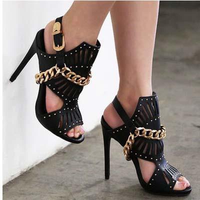 BLACK CHAIN HIGH HEEL PEEP TOE SANDALS