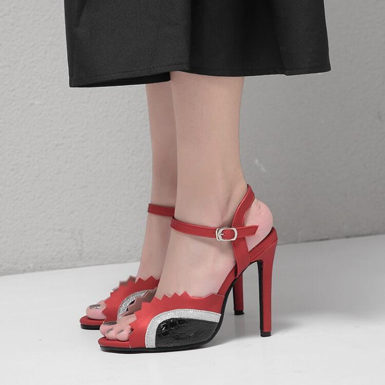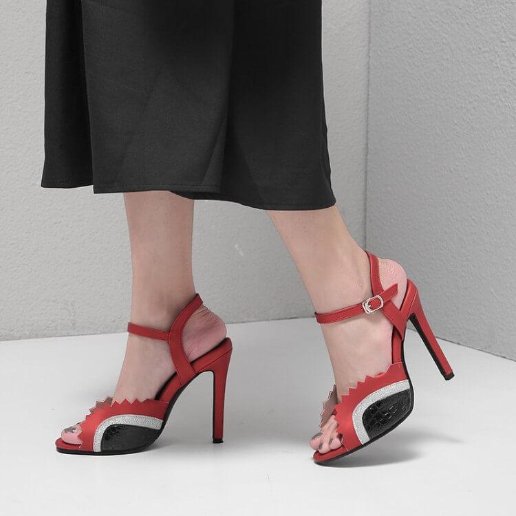 SUMMER LEATHER HIGH HEEL BUCKLE ANKLE SANDALS