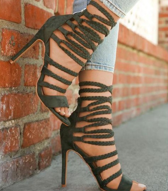 Straps Cross Ankle Wrap Tassels Open Toe Stiletto High Heels Sandals