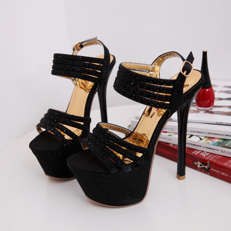 Rhinestone Ultra-High Heel Waterproof Platform Sandals