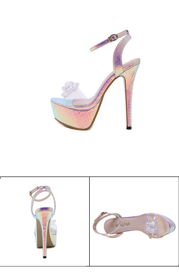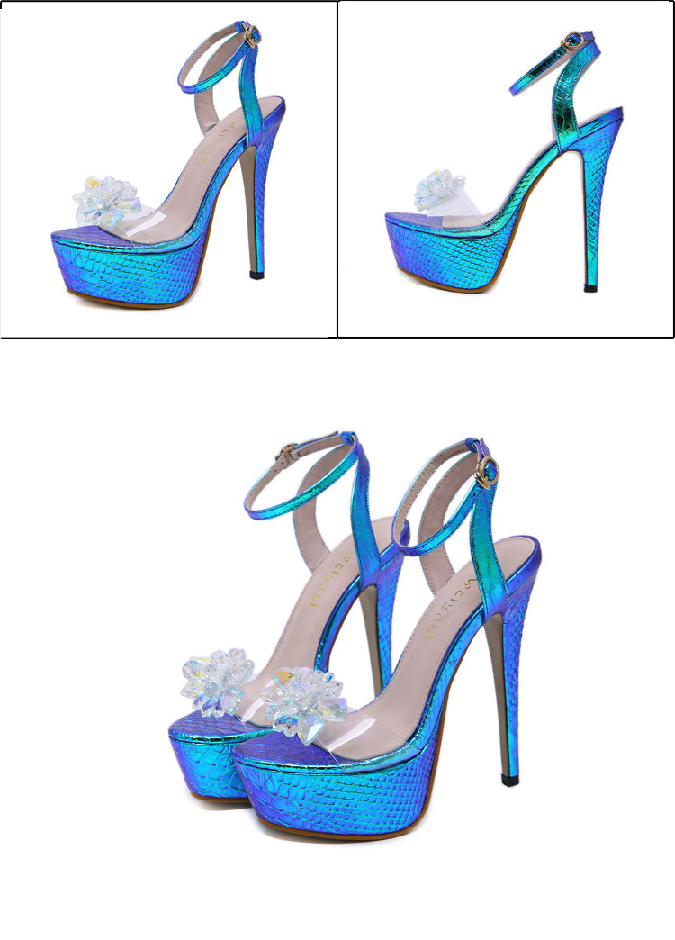 Radium Color Super High Heel PVC Flower Platform Sandals