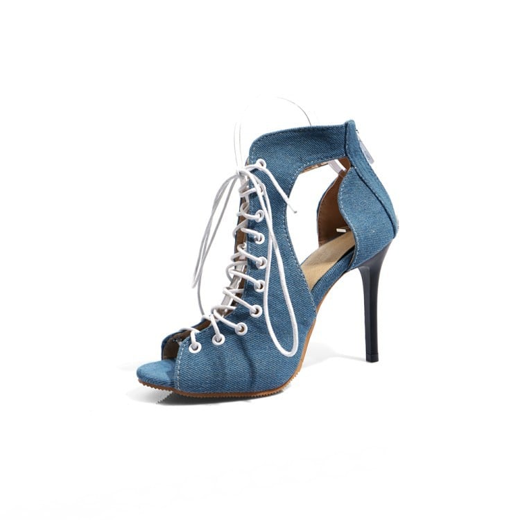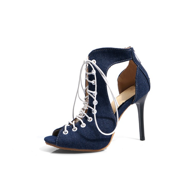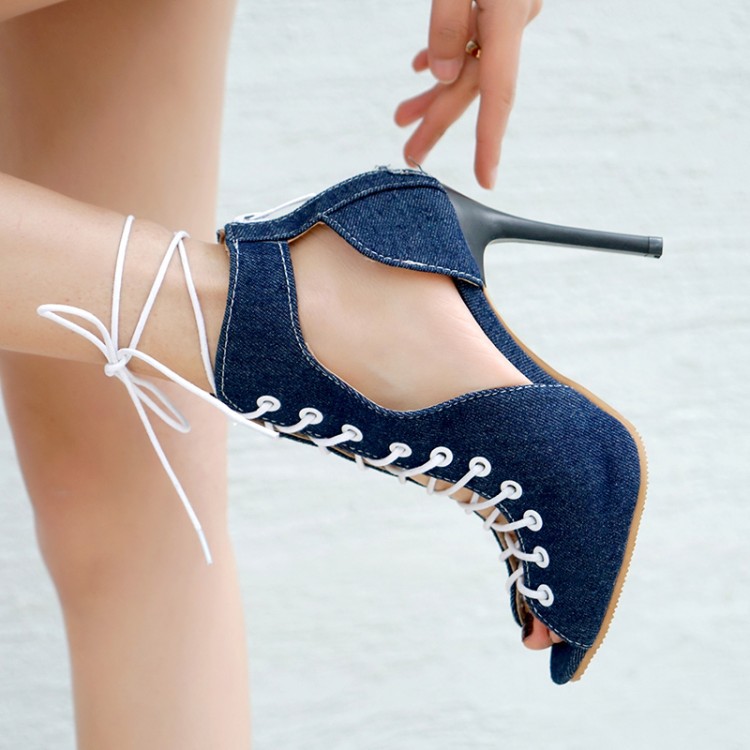 Sexy Denim Peep Toe Strap High Heel Ankle Boots