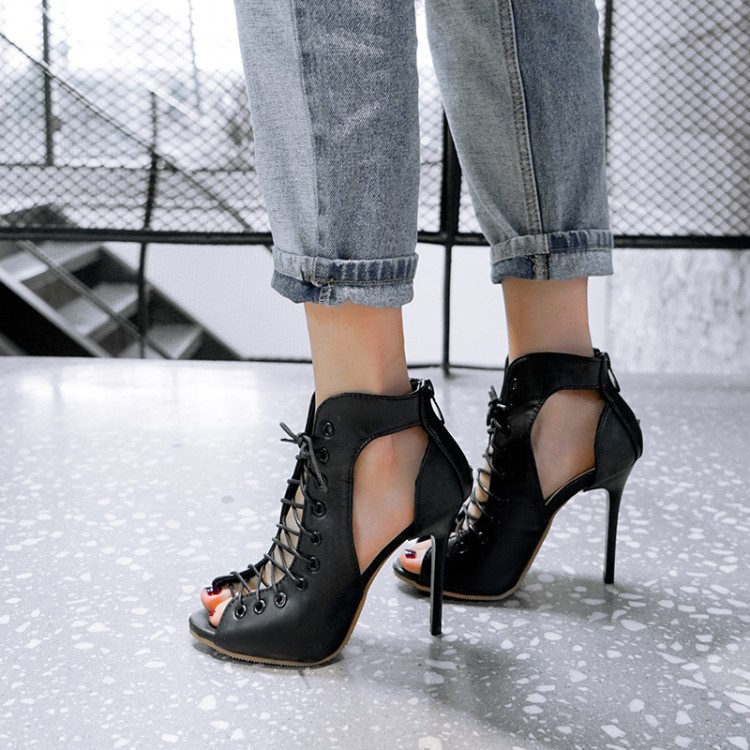 Pattern Type: Denim, Peep Toe, Strap, High Heel, Ankle Boots