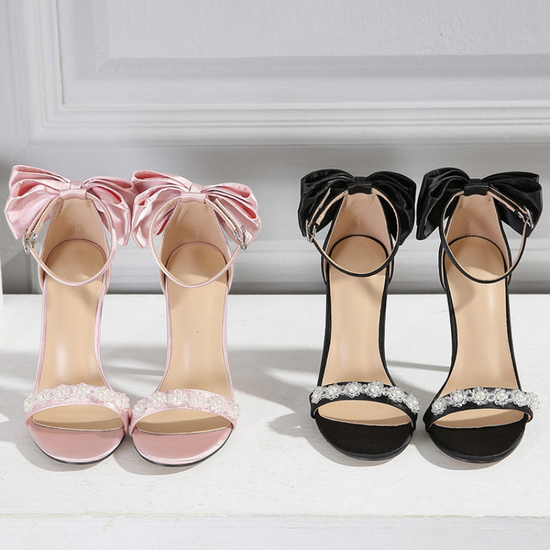 Chic Pearl Bow One-Strap Stiletto Sandals