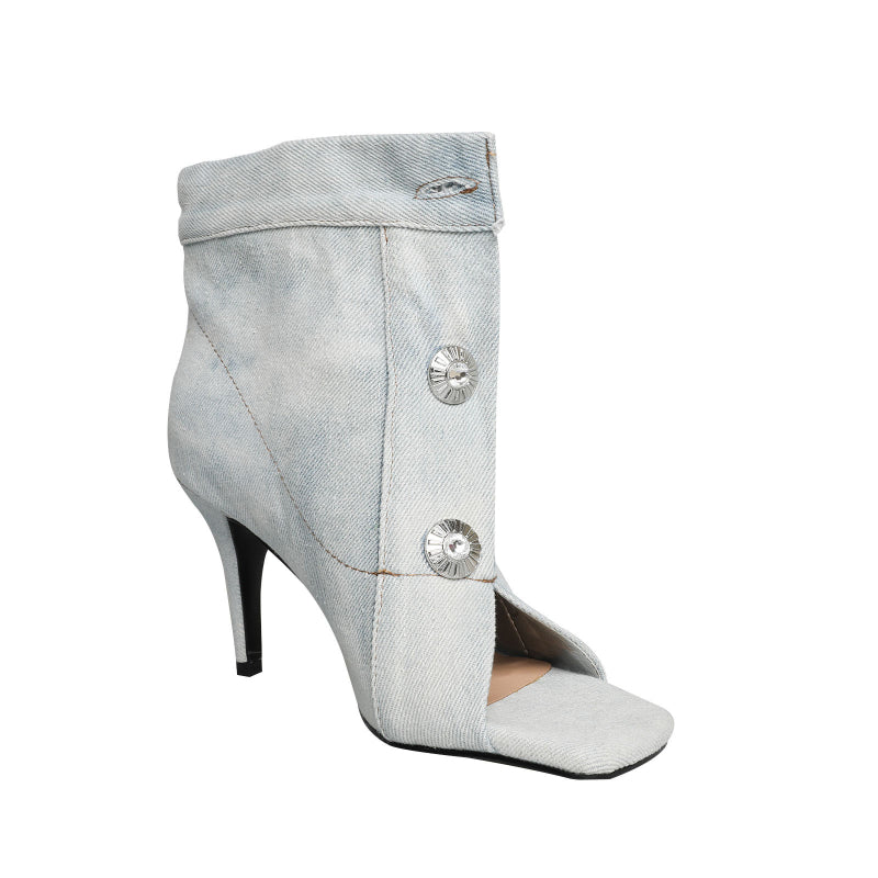 Cowboy Denim Peep Toe Stiletto Boots