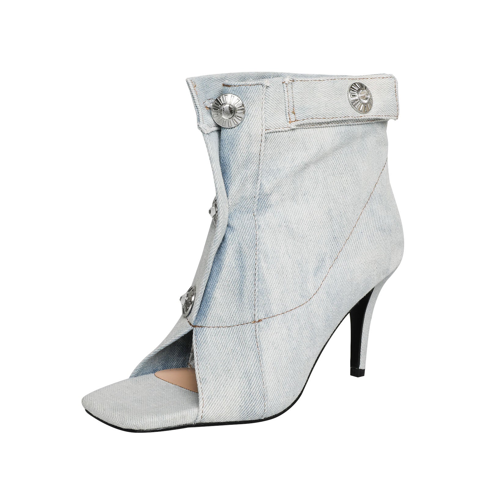 Step out in style with our Cowboy Denim Peep Toe Stiletto Booties. Crafted from premium denim material, these booties feature a unique fish-mouth design that adds a touch of sophistication to any outfit. The slender stiletto heel provides just the right amount of height, while the peep toe design offers a hint of allure. Whether you're dressing up for a night out or adding flair to your casual ensemble, these boots are sure to make a statement
