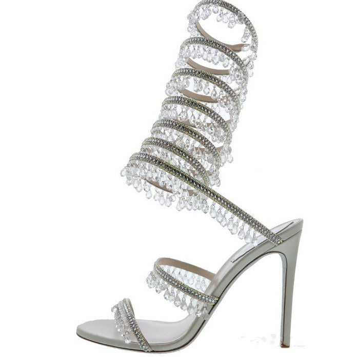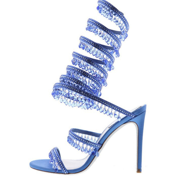 Gemstone-Adorned Wrap Around Ankle Strap Stiletto Sandals