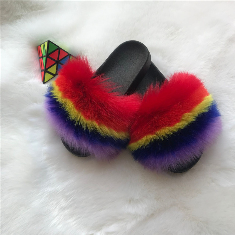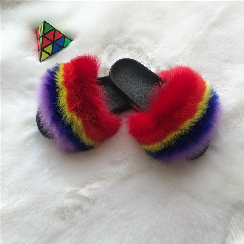 Summer fur imitation raccoon dog hair fox hair fake hair lady's flip flop