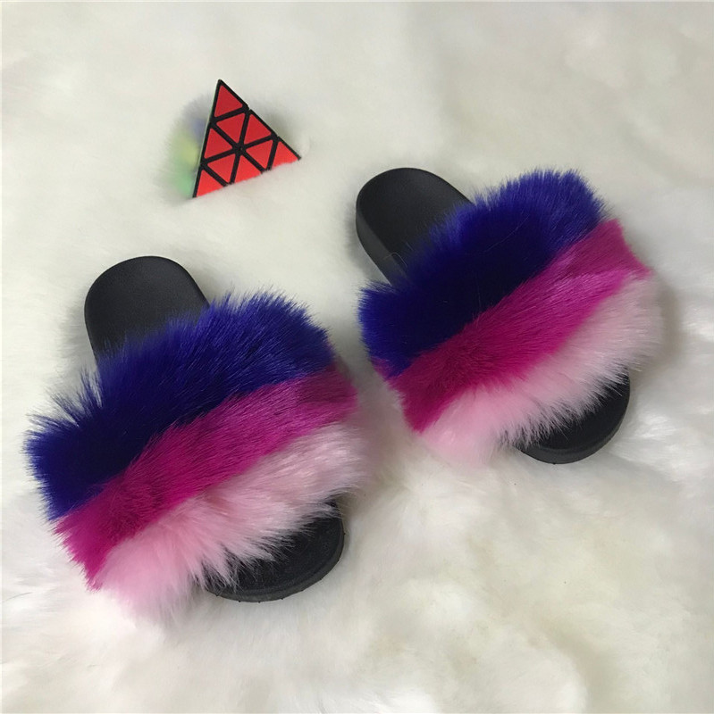 Summer fur imitation raccoon dog hair fox hair fake hair lady's flip flop