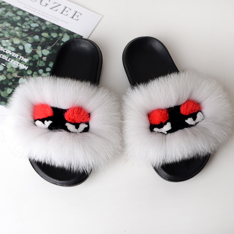 Fox fur little monster slippers slippers Jurchen fur grass fur cool slippers