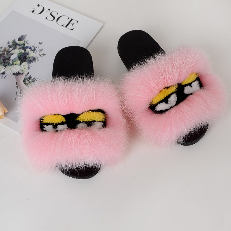 Fox fur little monster slippers slippers Jurchen fur grass fur cool slippers