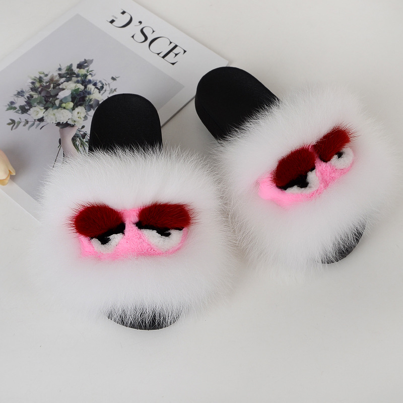 Fox fur little monster slippers slippers Jurchen fur grass fur cool slippers