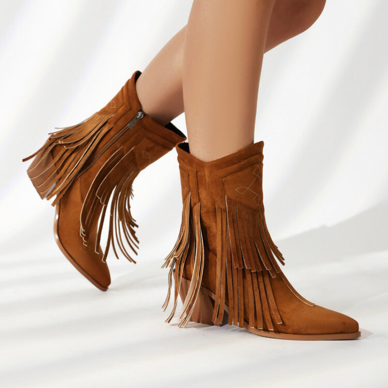 Step out in style with our Embroidered Suede Ankle Boots featuring chic tassel accents and eye-catching contrast colors. Crafted with soft suede material, these boots offer a luxurious feel and exceptional comfort. The pointed toe design adds a touch of sophistication, while the side zipper closure ensures easy wear. Elevate your ensemble with these versatile boots that seamlessly blend fashion and functionality