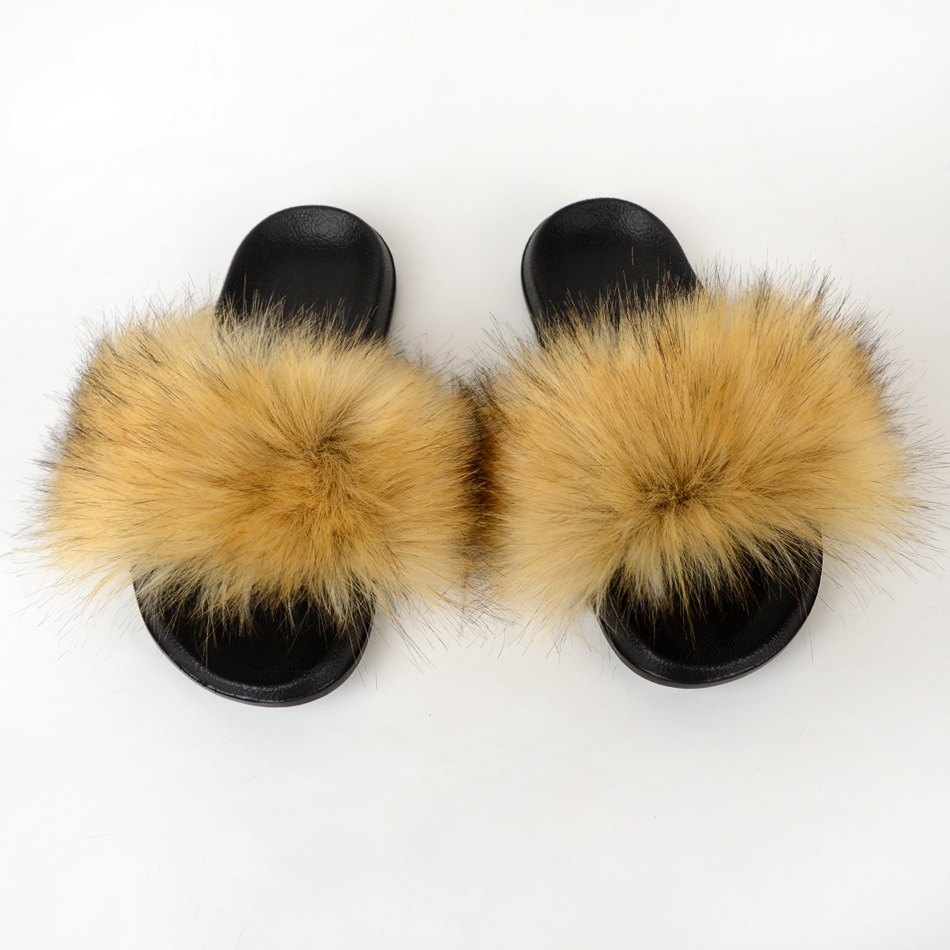 Raccoon dog hair imitation fox hair slippers women's hair sandals