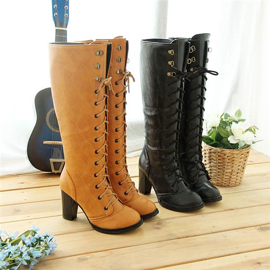This is a high boots below knee, so cool and fashion. Highlight front lace up and metal decorate, it is an essential fashion item to your fashion wardrobe. This is a classic boots that you must love.