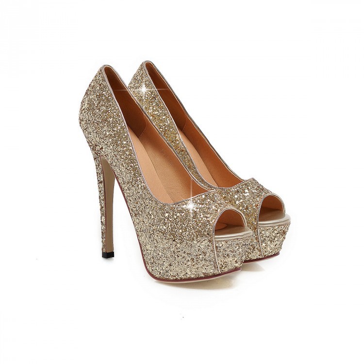 Sequins Peep-Toe Sexy High Heeled Bride Sandals Shoes
