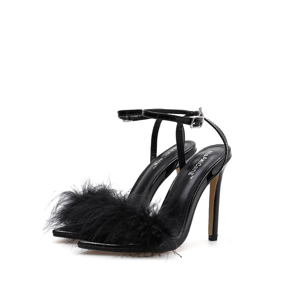 STILETTO HIGH HEEL FUR BUCKLE PARTY SANDALS