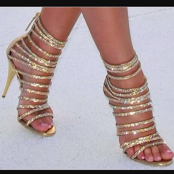 STRAPS BACK ZIPPER STILETTO HIGH HEELS GOLD WITH DAMOND HEELS GLADIATOR SANDALS