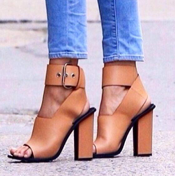 ANKLE BAND WAIST OPEN TOE HIGH CHUNKY HEEL SANDALS