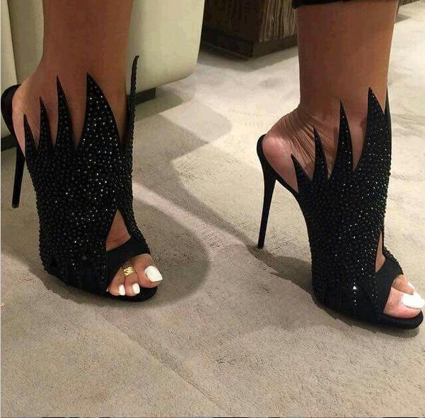 Crystal Irregular Cut Peep-toe Stiletto Hight Heels Slipper Sandals