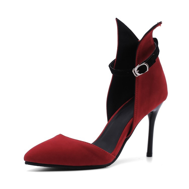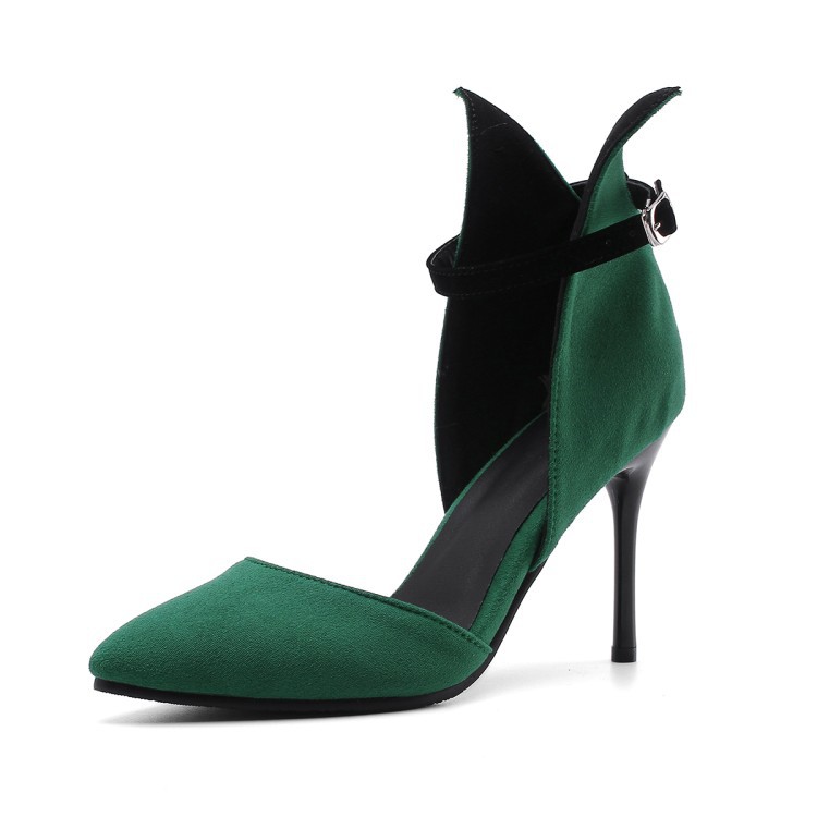 Color Block Pointed Toe Ankle Wrap Stiletto High Heels