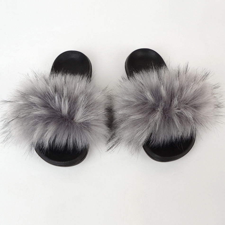 Raccoon dog hair imitation fox hair slippers women's hair sandals