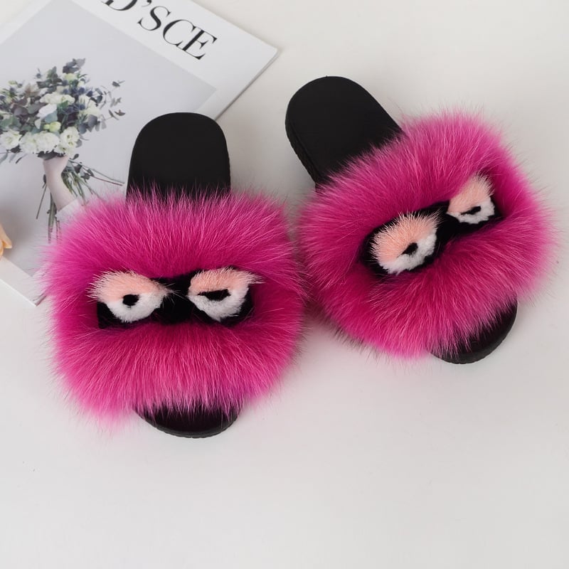 Fox fur little monster slippers slippers Jurchen fur grass fur cool slippers