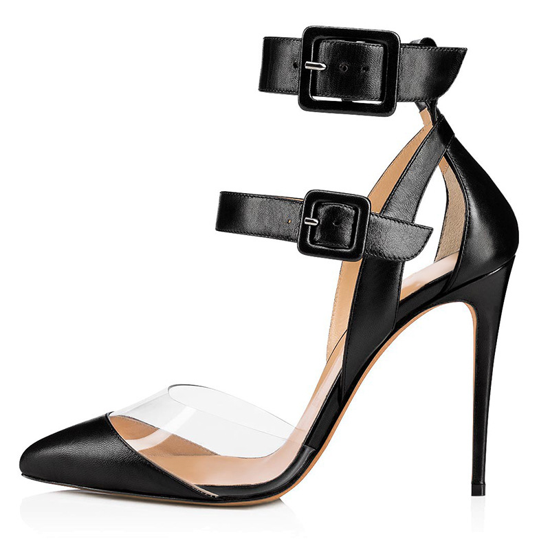 PVC Splicing Pu Buckle Design Stiletto Shoes