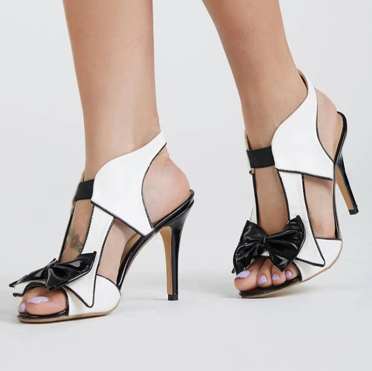 Sexy Color Matching Bow High Thin Heel Elastic Sandals