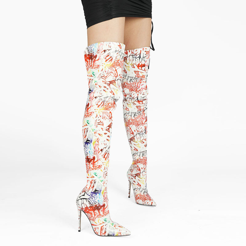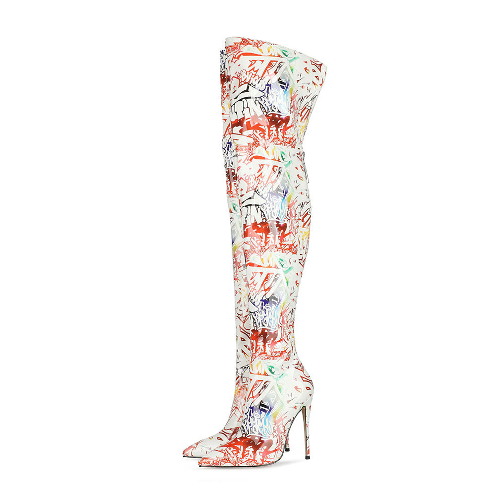 Elevate your style with these stunning over-the-knee boots that effortlessly blend sensuality with sophistication. Crafted with a colorful and sleekly sexy material, these boots feature a zipper detailing along the back for added allure. The ultra-fine high heels elongate your legs, making every step a statement of confidence and grace. Whether paired with a daring mini dress or sleek skinny jeans, these boots are sure to turn heads wherever you go