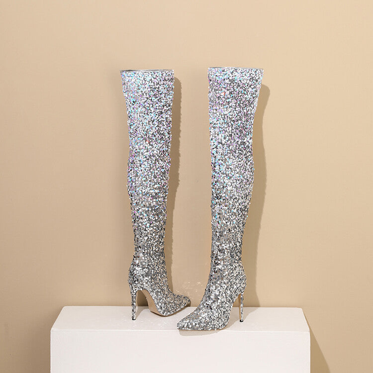 Gradient Sequin Side Zip Over-the-Knee Boots
