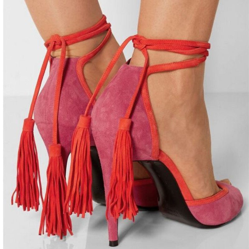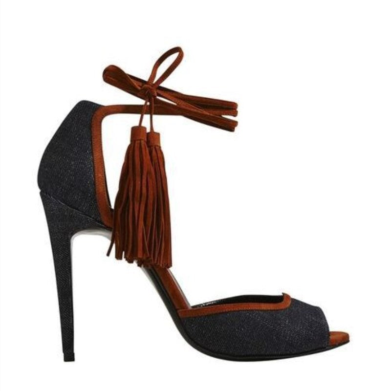 Fashionable Fringed Peep Toe Stiletto Sandals