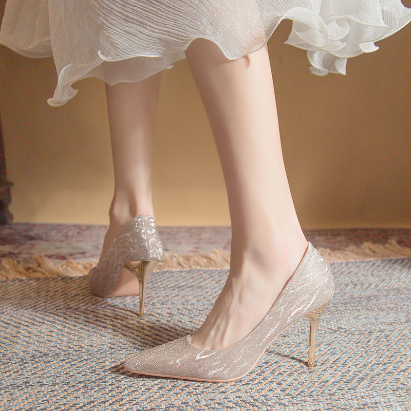 Versatile Fairy-inspired Silver Stiletto Heels Shoes Heel Height 6.5CM