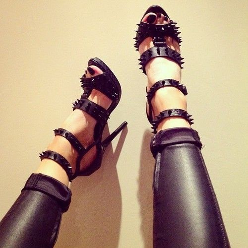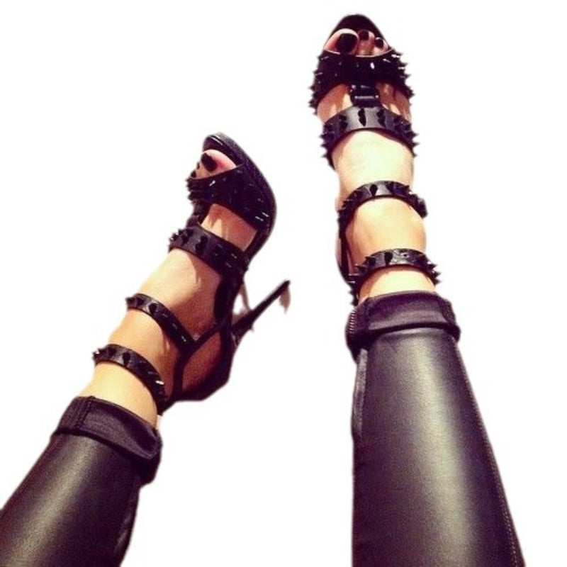 Seductive Pure Cowhide Texture and Rivets High Heel Sandals