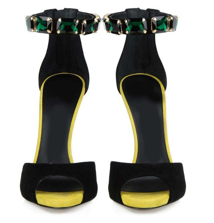 Elevate your summer style with our exquisite Sparkling Gemstone Mosaic Stiletto Sandals. Crafted to perfection, these sandals feature a mesmerizing mosaic design adorned with shimmering water gems, creating a captivating allure with every step. The slender stiletto heel adds a touch of sophistication, while the vibrant color palette injects a playful charm into your ensemble. Step into luxury and make a statement wherever you go with these dazzling sandals that seamlessly blend elegance and glamour